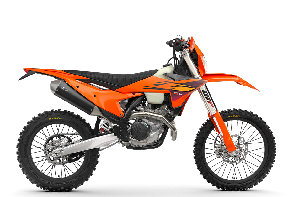 The KTM 450 EXC-F rolls into the open class with a renewed appetite for finding the limit. Boasting a class-leading chassis, unflappable suspension, race-proven bodywork, and rider-focussed ergonomics - not to mention one of the winningest 450 cc engines in the class - the KTM 450 EXC-F is ready to launch off the line with the podium firmly in its sights.